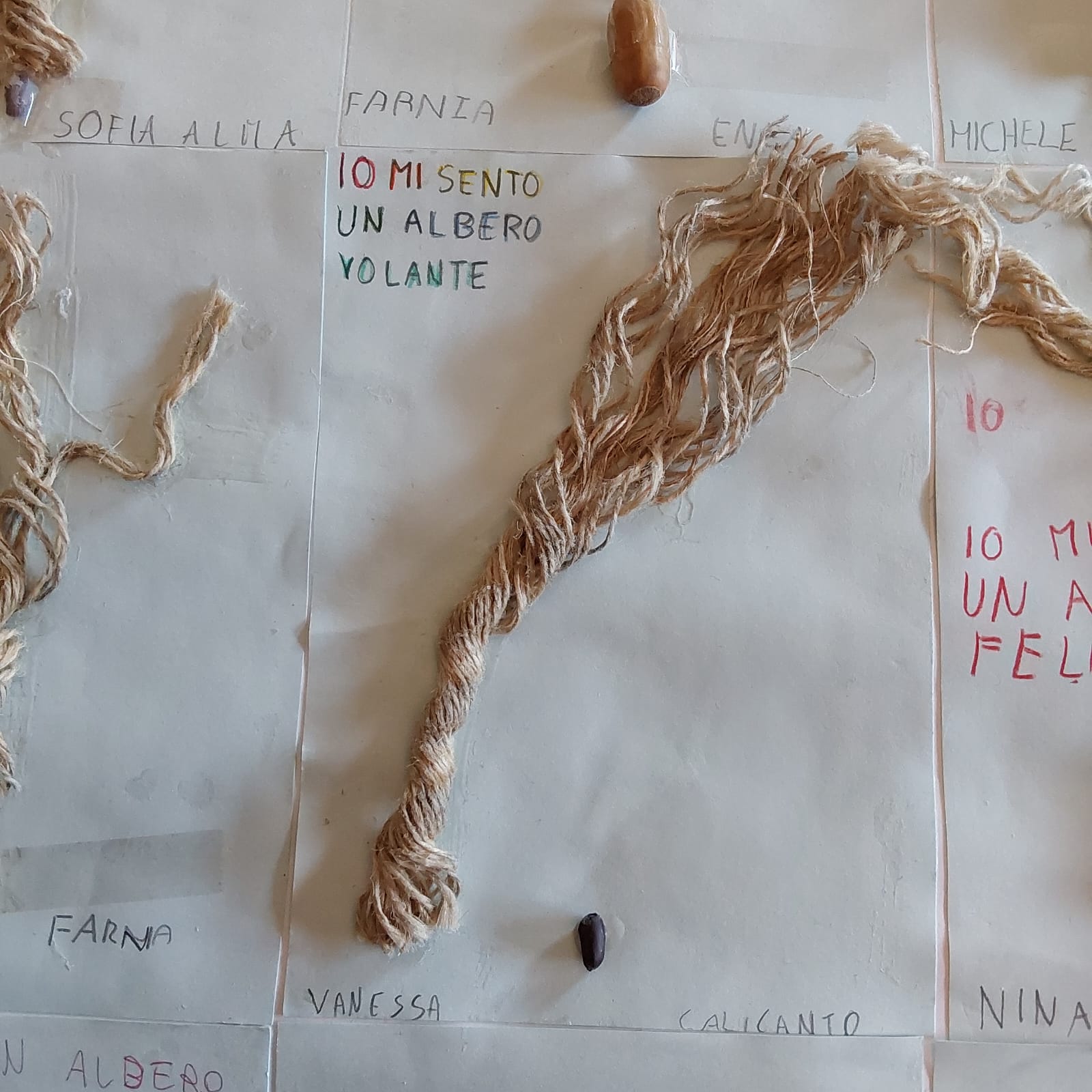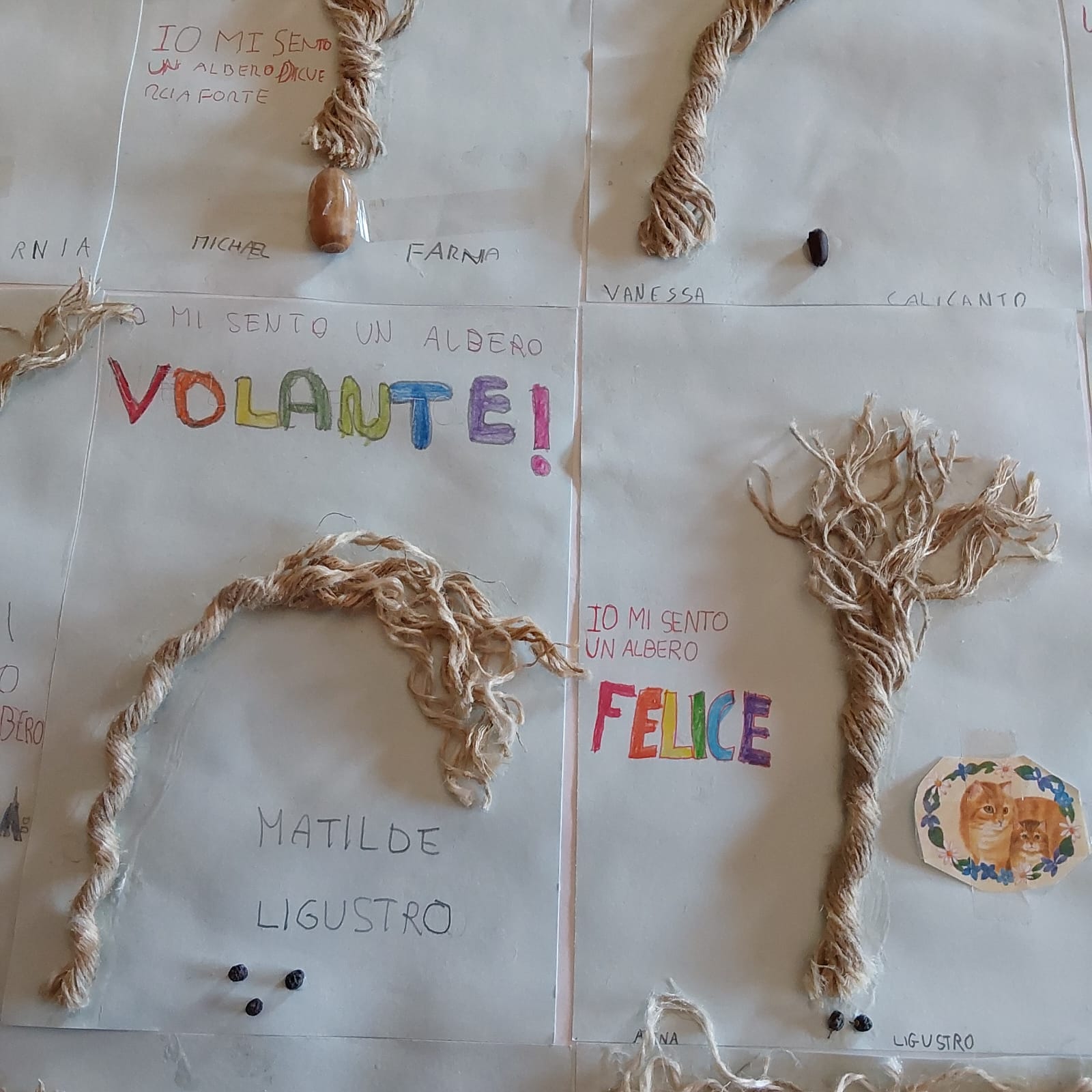 Dallo spunto dato da questo testo i bambini e le bambine hanno immaginato e sognato quale albero si sentono loro e lo hanno realizzato in modo splendidamente semplice e autentico con le loro mani a partire da: un semino, una semplice corda e una foglia magica.