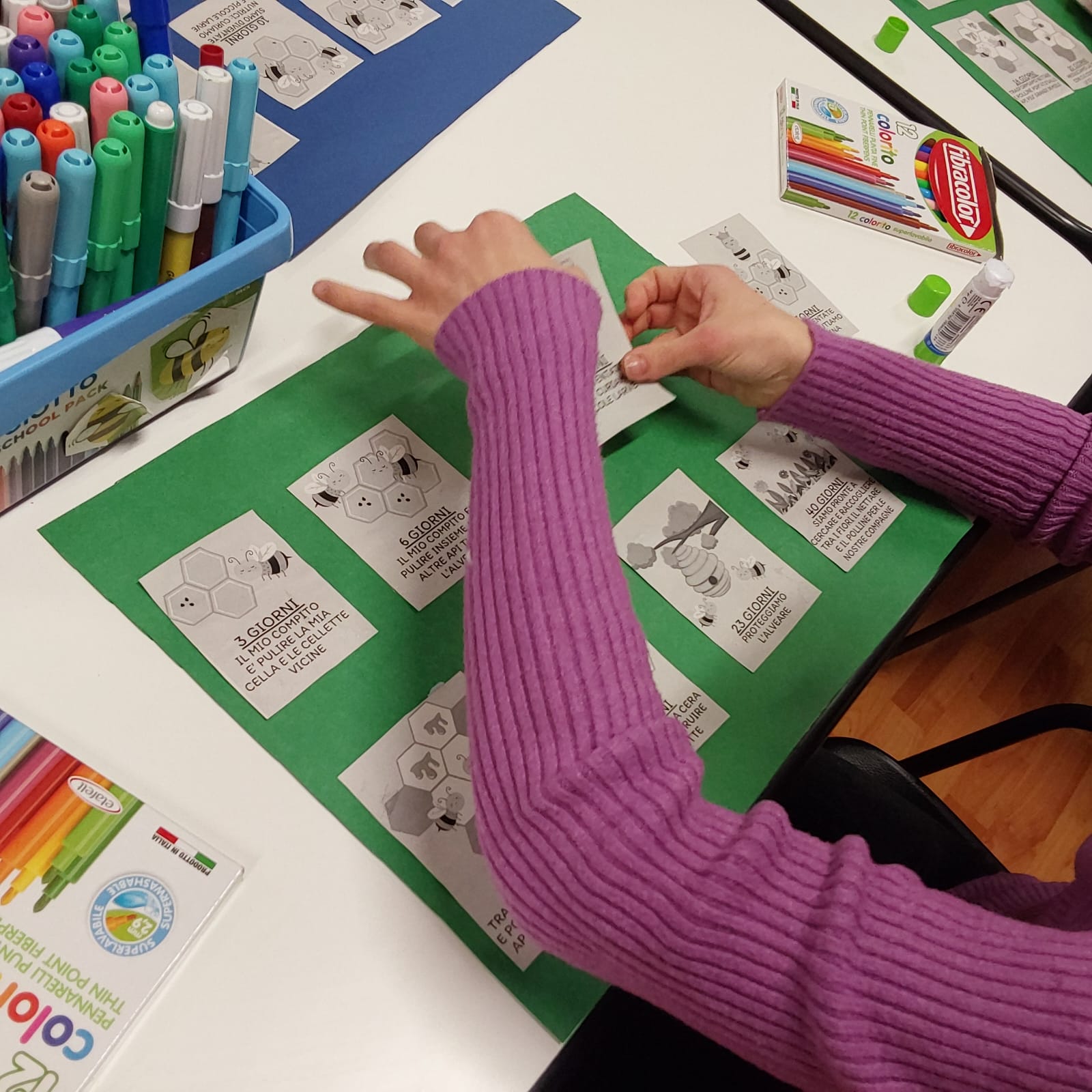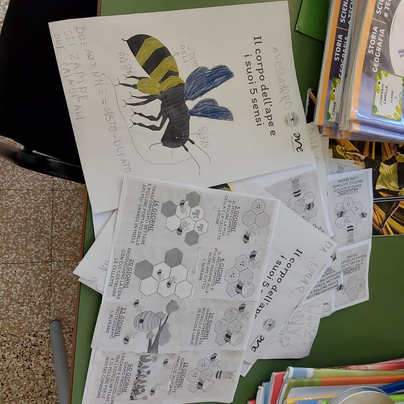 A supporto degli incontri realizzati con gli apicoltori AMEntelibera ETS ha sviluppato un percorso in classe che ha approfondito il corpo dell'ape e i suoi sensi e il suo sviluppo a partire dalla nascita con i diversi ruoli e compiti che man mano che l'ape cresce sviluppa all'interno della sua società. E' stato realizzato inoltre un laboratorio dedicato alla realizzazione delle bombe di semi che poi i bambini/e hanno lanciato in paese insieme ai loro insegnanti durante una passeggiata.