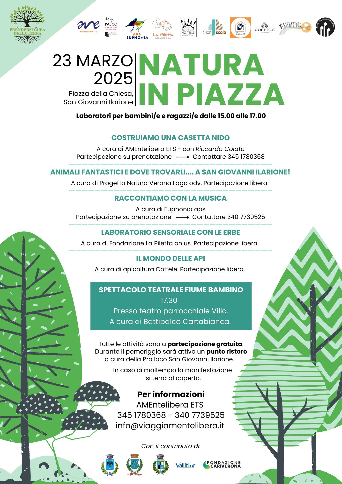 La Natura insieme ai bambini e alle bambine si prendono la piazza! Un pomeriggio dedicato a loro a San Giovanni Ilarione grazie al coordinamento di AMEntelibera ETS, la Pro loco San Giovanni Ilarione, il Comune e tutti i partner di progetto.